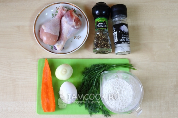 Я готовлю блюдо на курице, а именно на куриных ножках. Для более наваристого бульона и большей порции супа стоит взять бедра или курицу целиком. Остальные ингредиенты представлены на фото, приступим к приготовлению!
