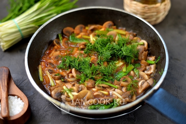 Подливу посолите и поперчите по вкусу, всыпьте нарубленный укроп, перемешайте блюдо в последний раз. Накройте крышкой и оставьте минут на 10-15 настояться. Черемша отдаст свой яркий чесночный вкус блюду и оно станет в разы вкуснее.