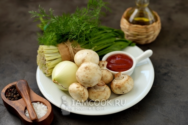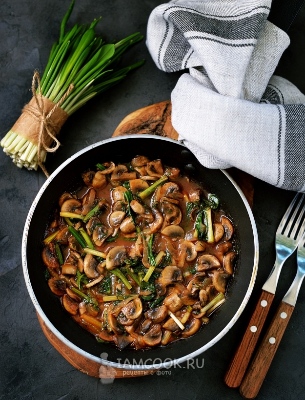 Подавать черемшу с грибами в томатном соусе вкуснее всего с картофельным пюре.