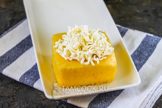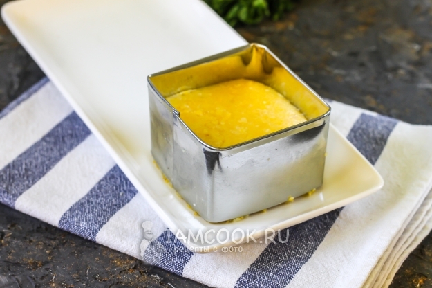 Кулинарным квадратом вырежьте из каши необходимую порционную часть и выложите на блюдо.