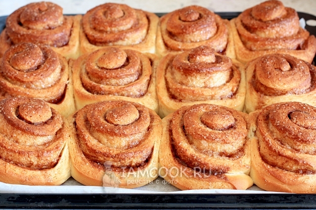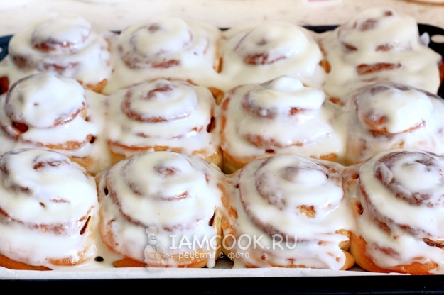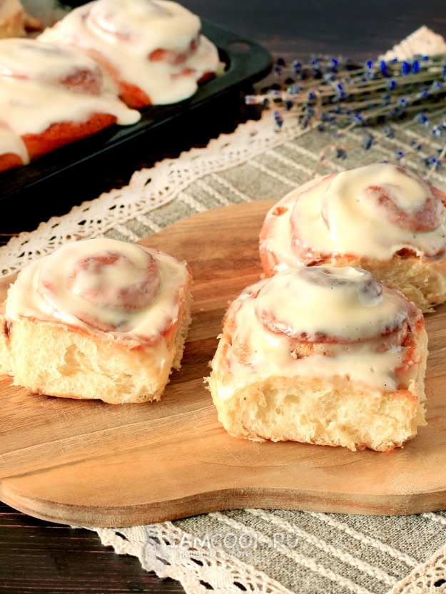 Булочки Синабон с корицей и сливочным кремом готовы, можно подавать к столу.