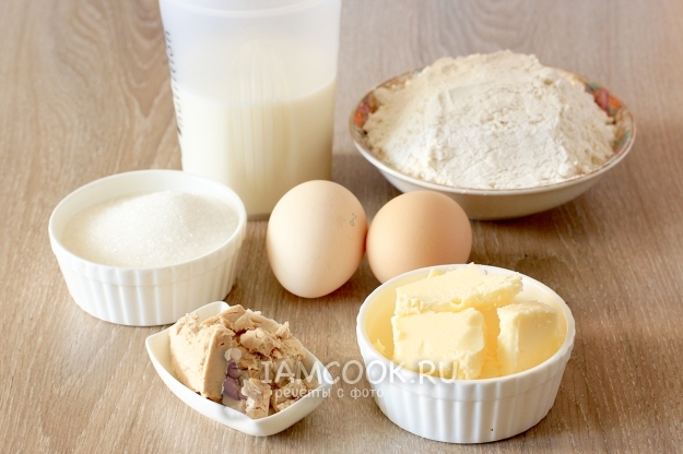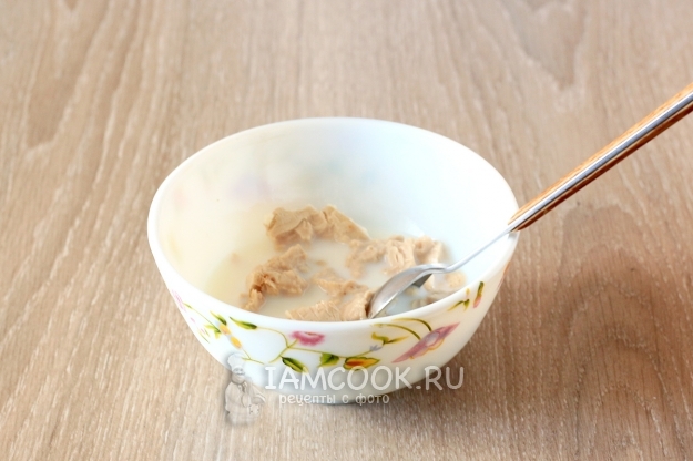 Отлейте от общего количества немного теплого молока в пиалу и растворите в нем свежие дрожжи. Обязательно добавьте половину чайной ложки сахара. Всё размешайте до гладкости и подождите, пока дрожжи не начнут пениться.