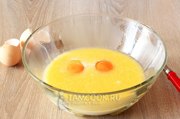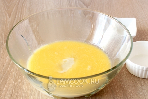 Выберите удобную емкость для замешивания теста. Налейте в нее теплое молоко, растворенные дрожжи, соль, сахар и добавьте растопленное сливочное масло.