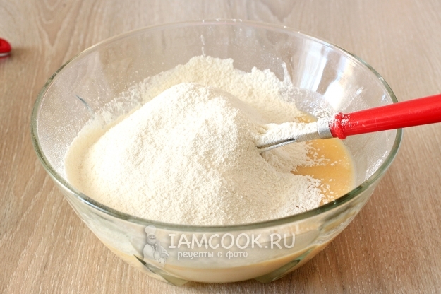 Муку обязательно просейте и начинайте подсыпать ее постепенно. Сначала смешивайте тесто ложкой, но по мере его загустения пользуйтесь руками. Обычно, добавив полкило муки, тесто вываливают на поверхность, где вымешивают, подсыпая остальную муку.
