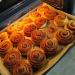 Выложите булочки на противень, выстланный пергаментом. Чтобы карамель не горела при выпечке, некоторые советуют донышко обмакивать в муку, я этого не делала. Накройте булочки полотенцем или пленкой и поставьте на расстойку, примерно на 1 час. За это время они существенно увеличатся в размере. Затем отправьте их в духовку и выпекайте при 180 градусах до румяного цвета около 20-25 минут.