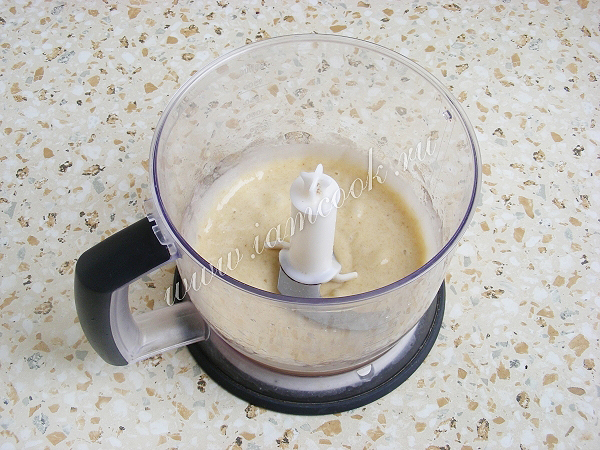 Добавить в банановую массу сливки (можно и 10 %), сахарную пудру и свежевыжатый лимонный сок.