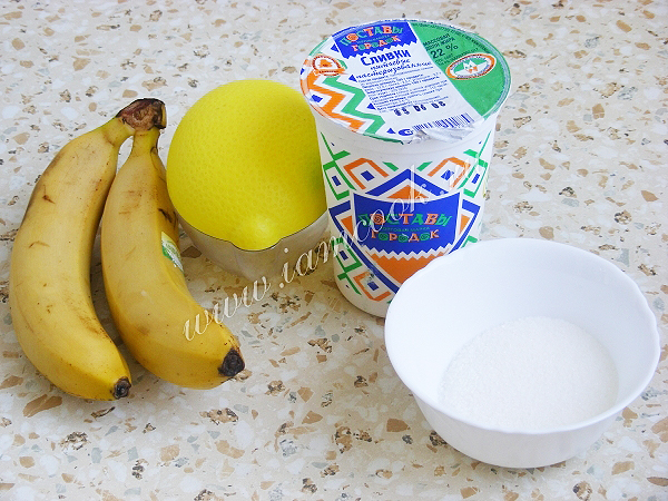 Вот ингредиенты: бананы, сливки, сахар, лимон.