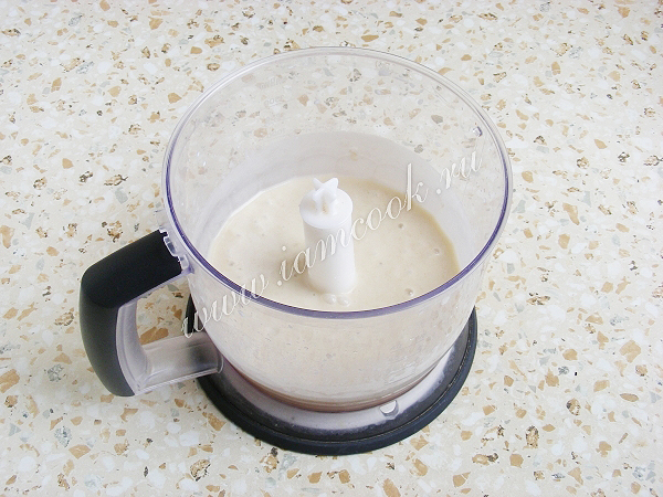 Замерзшие фрукты измельчить в блендере. В самом начале получатся твердые крошки, которые впоследствии превратятся в приятную однородную массу.