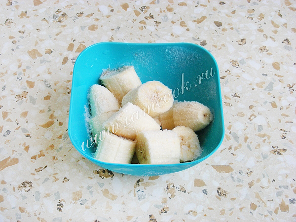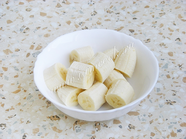 Бананы порезать кружочками. Лучше взять очень спелые, даже немного перезрелые.