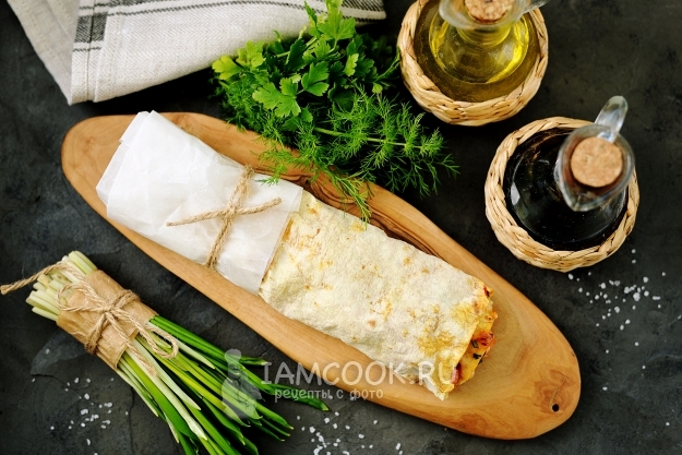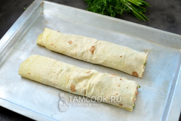 Готовый рулет из лаваша подавайте горячим, сразу же после приготовления.