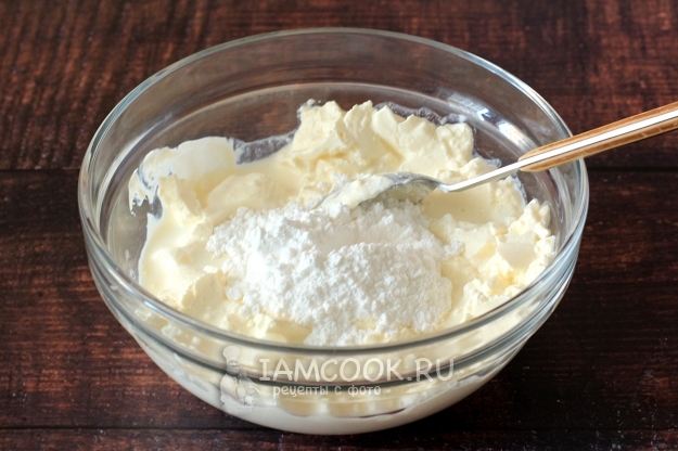 Маскарпоне соедините с молоком и сахарной пудрой. Размешайте до однородного состояния.