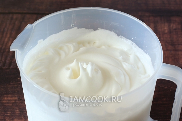 Яйца разделите на белки и желтки. В желтки добавьте половину всего сахара и взбейте до пышной массы.