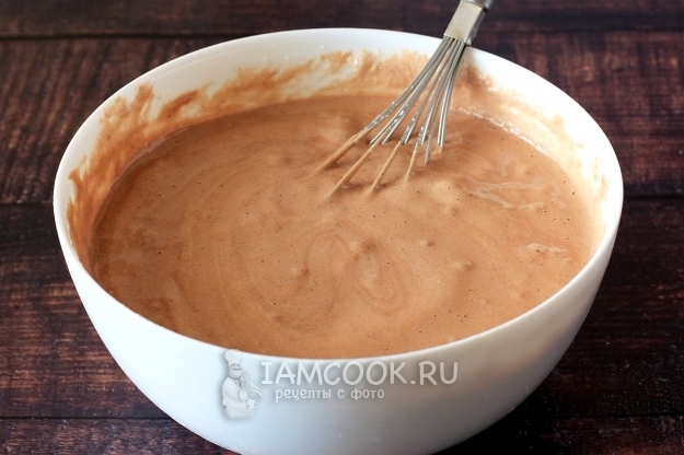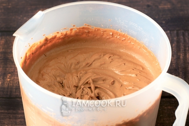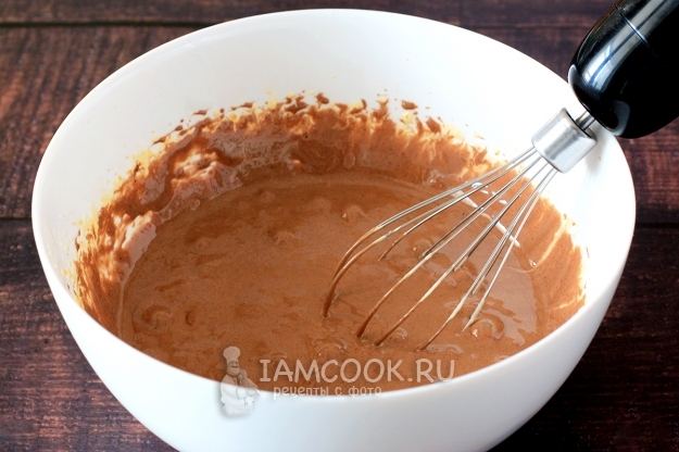 Добавьте к желткам смесь какао и масла, снова хорошенько все взбейте.