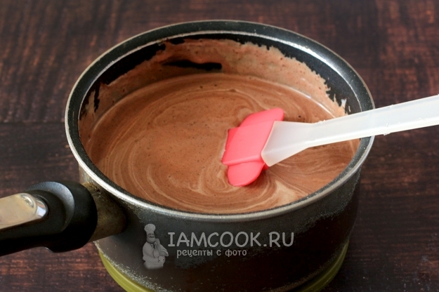 Растительное масло нагрейте в микроволновке до горячего состояния и соедините с порошком какао. Остудите.