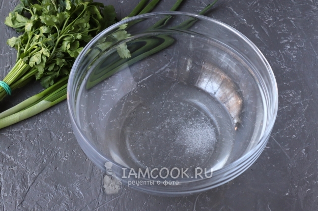 В подходящую для замеса миску нальем чистую фильтрованную воду комнатной температуры. Растворим в ней соль.