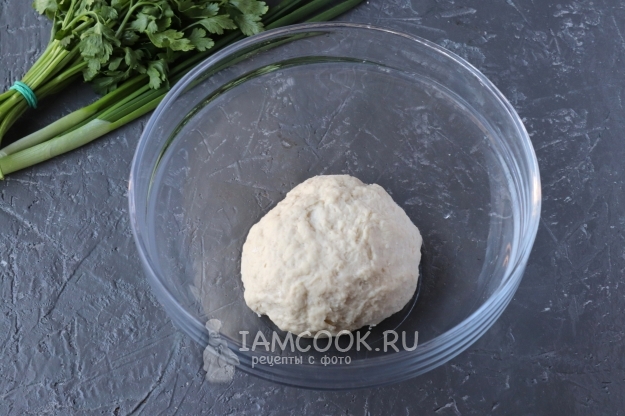Затем порциями введём просеянную пшеничную муку и замесим достаточно плотное тесто. Накроем его полотенцем или замотаем в пищевую плёнку, оставим на 30-40 минут "отлежаться". Кстати, такое тесто можно приготовить заранее, только с условием, что своей участи оно будет дожидаться в холодильнике.