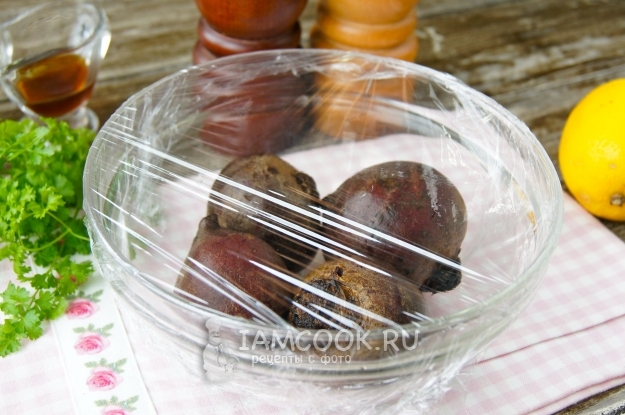Для начала необходимо сварить свеклу, я люблю запекать ее в микроволновой печи, этот способ самый быстрый, но вы можете сварить или запечь в духовке.