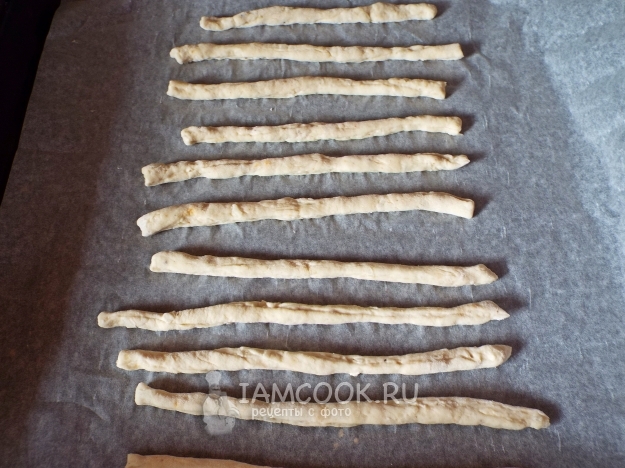 Хлебные палочки делают как нейтральными по вкусу, так и яркими, добавляя в тесто различные разные травы и специи. Можно также посыпать палочки специями или кунжутом непосредственно перед выпечкой.