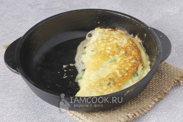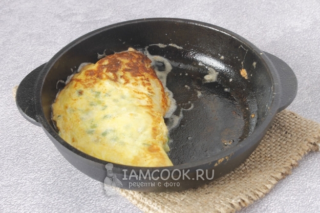 Переворачиваем омлет на другую сторону и жарим 1,5 минуты.