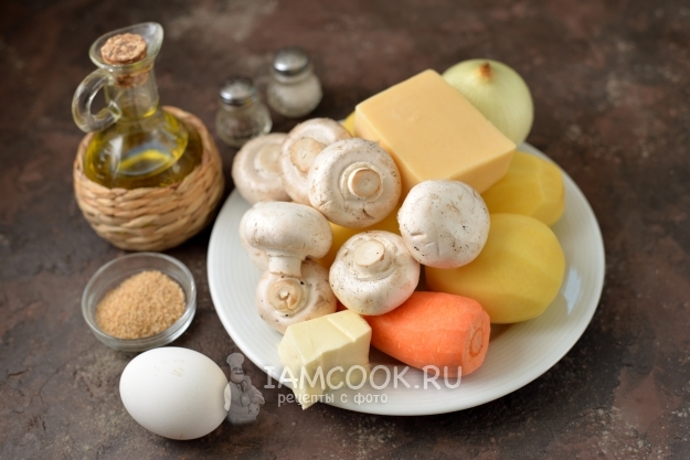 Подготовьте продукты по списку. Картофель, лук и морковь почистите, помойте. Грибы зачистите чистой кухонной губкой.