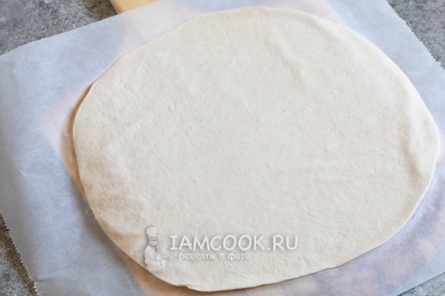 Раскатываем тесто в заготовку диаметром не менее 35 см (стандартный размер - 30 см).