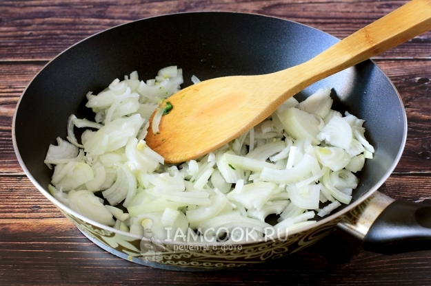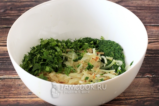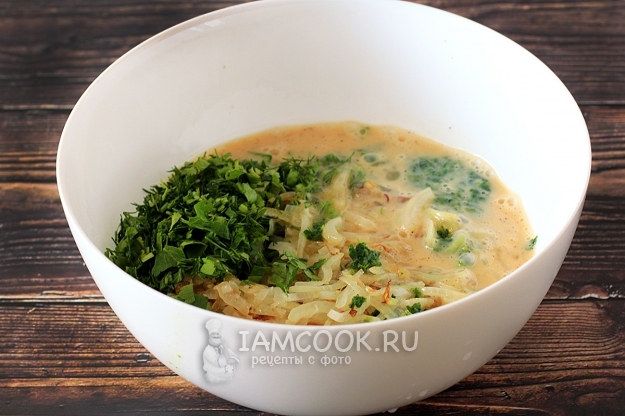 Влейте в начинку яйца, оставив пару ложек для смазывания пирога.