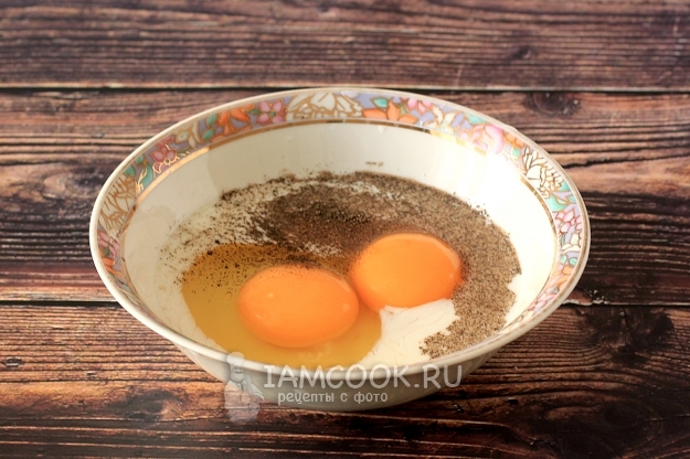 Соедините яйца с молоком, добавьте соль, перец и хорошенько взбейте вилкой до объединения.