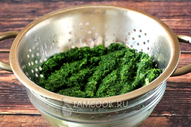 Оттаявший шпинат отожмите от жидкости и немного остудите.