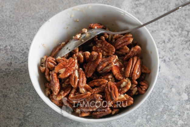 Примерно половину сиропа смешиваем с орехами пекан.
