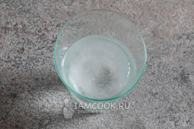 Предварительная операция - к началу приготовления пирога нам нужно обеспечить где-то 3 столовых ложки ледяной воды. Для этого либо нужно предварительно поставить воду в холодильник, либо бросить в нужное количество воды кубик льда.