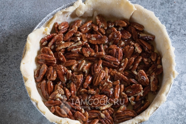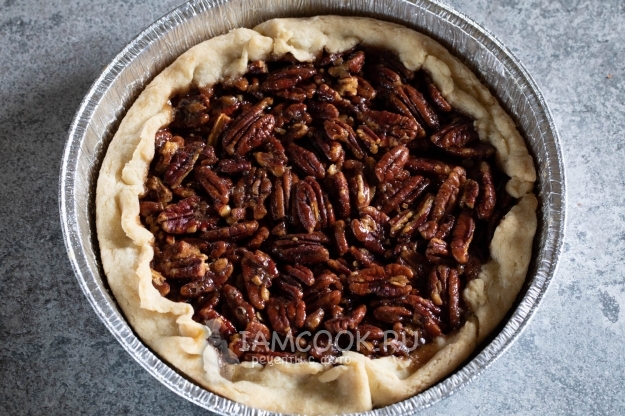 Выпекаем пирог с пеканом на нижнем уровне духовки 40-50 минут, пока бортики слегка не зарумянятся.