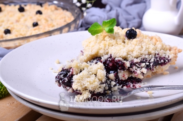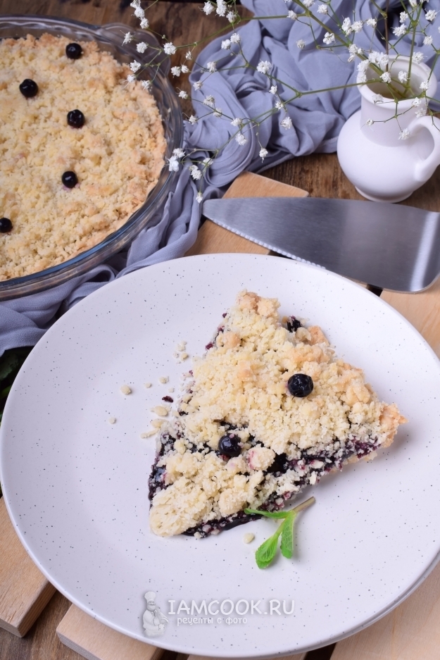 Получился пирог с рассыпчатым коржом и вкуснейшей черничной начинкой.