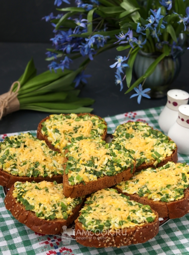 Я дождалась момента, когда у нас начали продавать черемшу, и сразу купила несколько пучков. У меня появление черемши всегда ассоциируется с приходом весны, а она в этом году к нам запаздывает. Решила порадовать семью и приготовить вкуснейшие горячие бутерброды с черемшой, сыром и яйцом. Скажу честно, что даже муж, который редко соблазняется на какие-то бутерброды, перед этими не смог устоять.