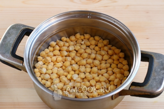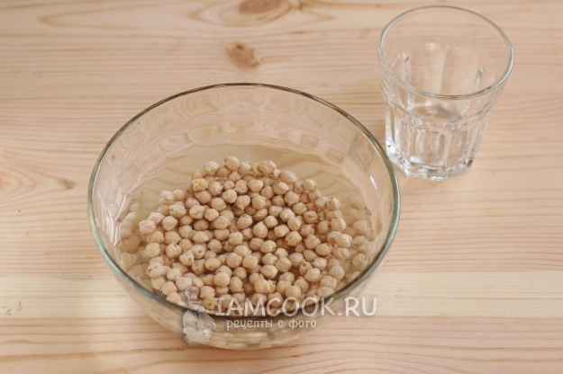 Зальем нут водой с вечера и оставим на ночь, за это время он разбухнет и его проще будет готовить. Чем дольше нут замачивается, тем меньше времени потом уйдет на его приготовление.