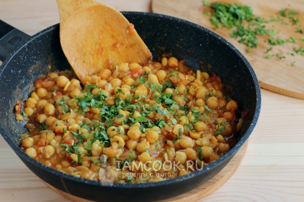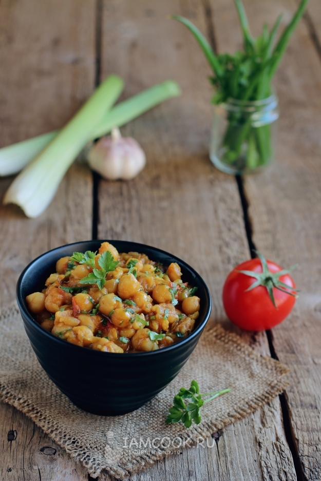 Нут в томатном соусе можно подавать в горячем и в холодном виде, любой вариант будет хорош.