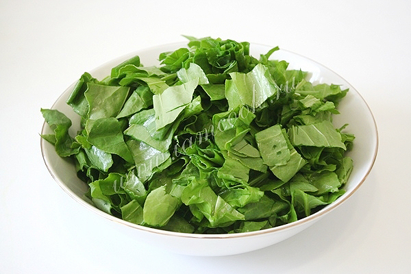 Щавель хорошо промыть. Нарезать листья щавеля.