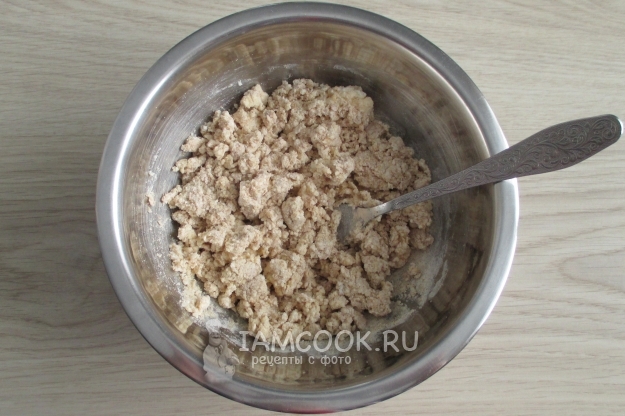 Соберите крошки в комок, они хорошо слепятся между собой, и тесто готово.