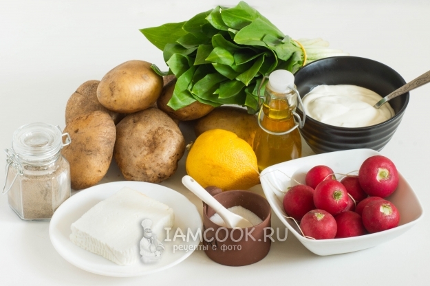 Итак, подготовьте все ингредиенты для картофельного салата с заправкой из черемши.