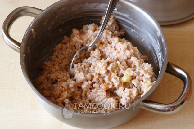 Перемешиваем и настаиваем под крышкой ещё 10 минут. Можно оставить кашу на всю ночь, тогда на утро она загустеет сильнее.