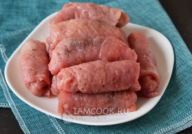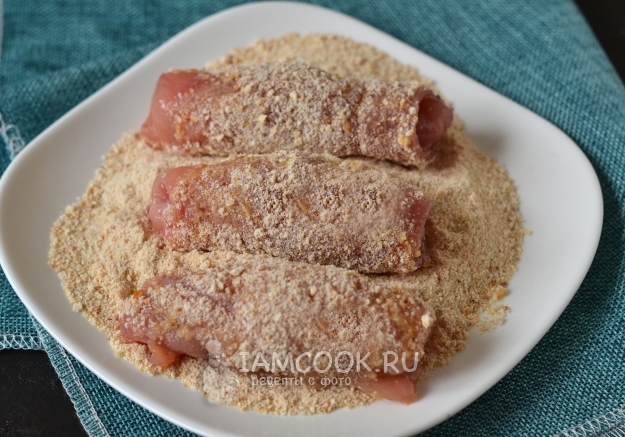 Искупаем рулетики со всех сторон во взбитом курином яйце. Яйцо выступает в нашем случае в роли клея.