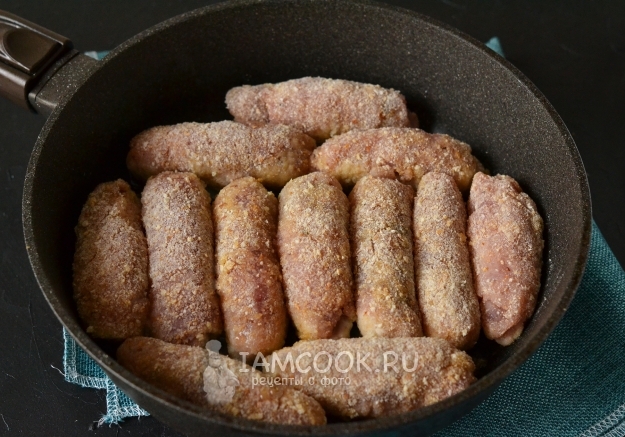 Обваляем в панировке из сухарей с мукой. И хорошо прижмем ладошками.