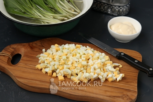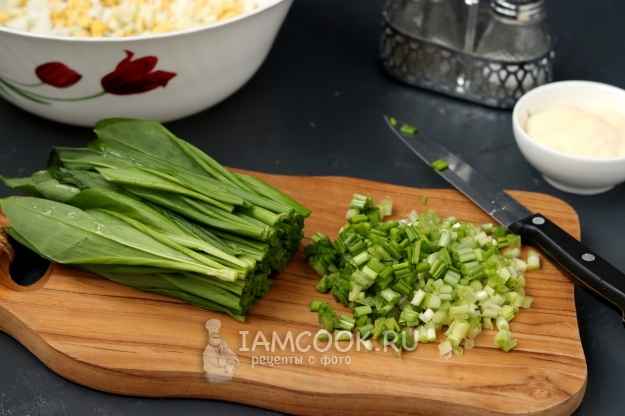 Черемшу тщательно промойте проточной водой и мелко нарежьте.