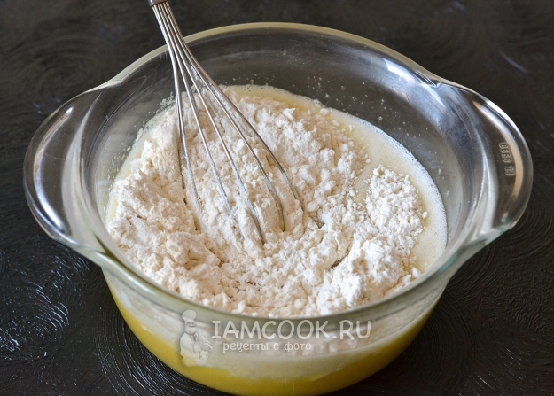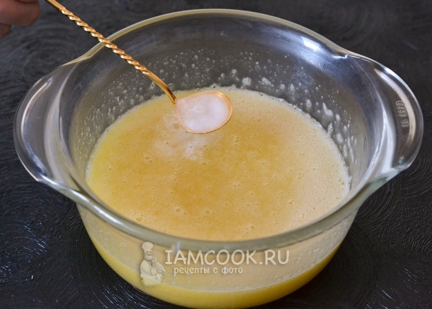 Всё хорошо перемешаем. Добавим гашеную кипятком или уксусом пищевую соду.