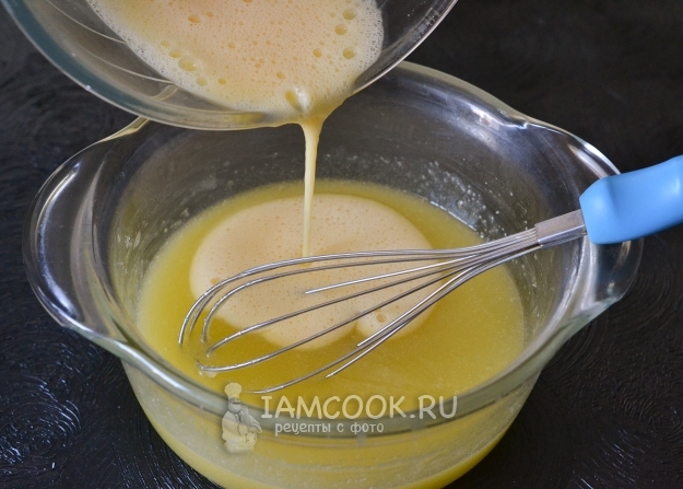 Сливочное масло нужно растопить. Я это сделала в микроволновой печи. Соединим масло с сахаром и хорошо перемешаем. В сахарно-масляную смесь добавим взбитое куриное яйцо.