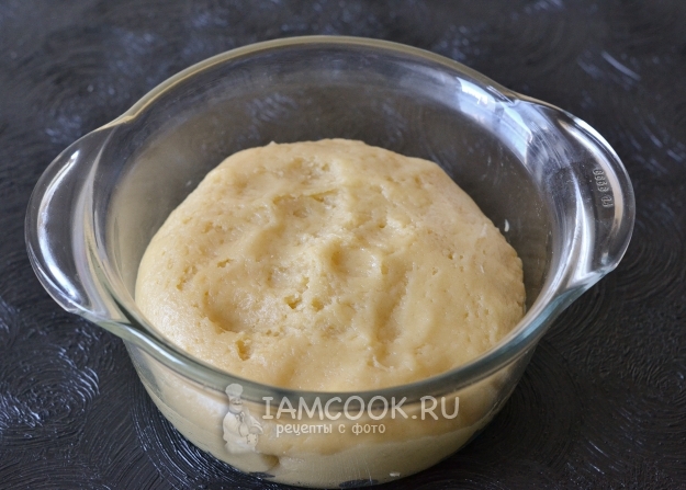 Замешиваем тесто. Тесто получится мягким и рыхлым. К рукам липнуть не должно. Охладим его.