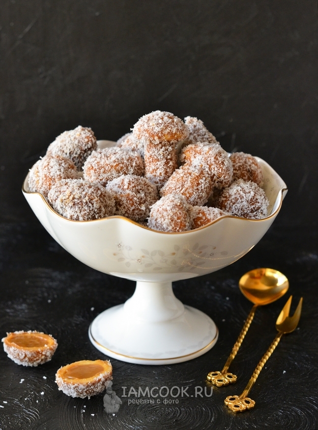 Орешки со сгущенкой и кокосовой стружкой готовы. Подаем на десерт.