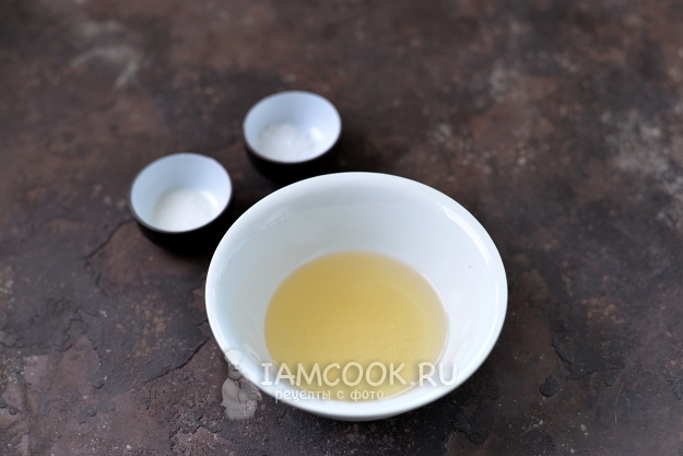 В это время смешайте уксус, соль и сахар, поставьте на 20 секунд в микроволновку. Растворите кристаллы соли и сахара.