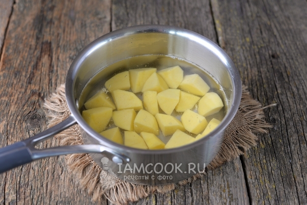 Залейте картофель холодной водой, чуть посолите ее, отварите минут 15 или до полной мягкости и готовности.