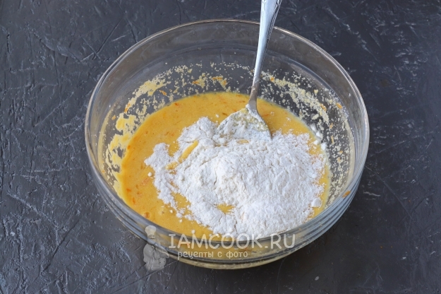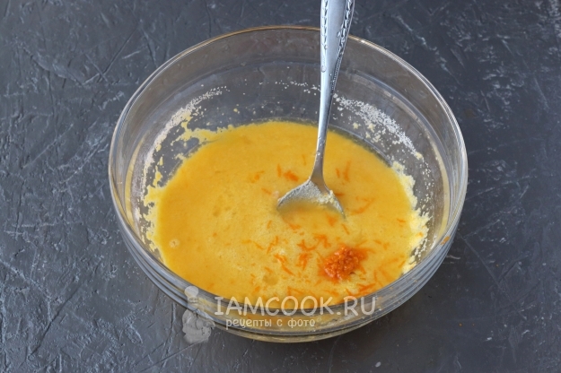 Далее добавить сок и цедру половины апельсина. Когда будете натирать цедру, смотрите, чтобы не попадала белая часть кожуры, иначе будет ощущаться горечь.