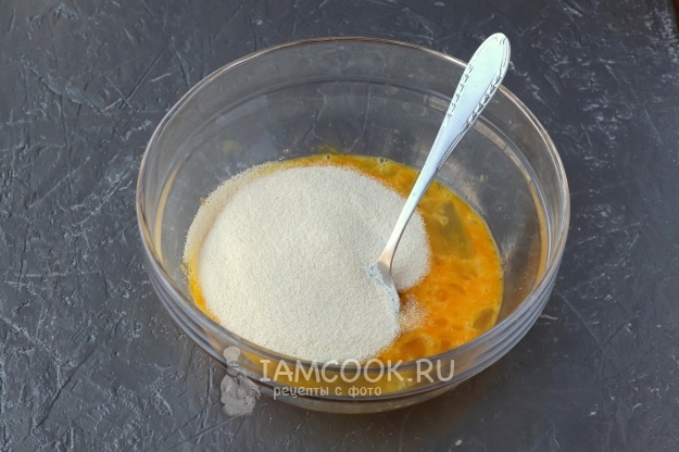 После чего оставить тесто при комнатной температуре на 10-15 минут, чтобы манная крупа набухла.